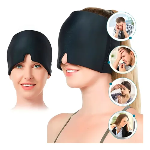 Este gorro de gel es una máscara de compresión elástica diseñada para el alivio natural de migrañas y dolores de cabeza mediante terapia de frío o calor. Su estructura de 360 grados cubre completamente la frente, los ojos y la parte posterior de la cabeza, permitiendo bloquear la luz y aplicar una presión suave y uniforme que ayuda a reducir la inflamación y la tensión muscular.
